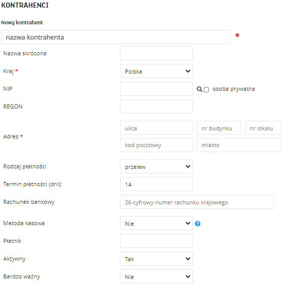 W przypadku, gdy inny podmiot jest płatnikiem faktury, a inny jej nabywcą, wówczas informacje takie należy zdefiniować na profilu kontrahenta. W zakładce Fakturowanie/Kontrahenci zarówno płatnik jak i nabywca powinien znajdować się na liście kontrahentów. Następnie należy wybrać kontrahenta, który będzie nabywcą i dokonać jego edycji. W polu Płatnik wybieramy właściwy podmiot z listy.