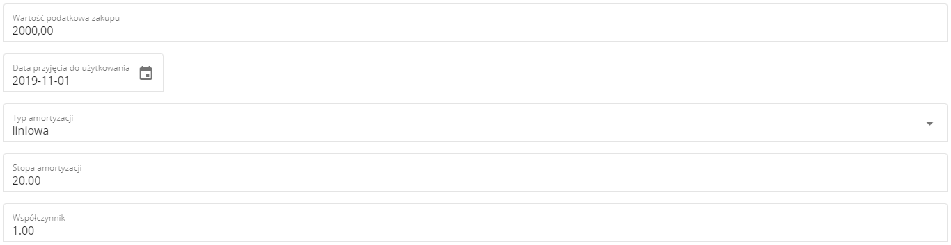 Amortyzacja jest naliczana automatycznie przez system na podstawie poniższych danych